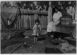 Alma Crosien, three-year-old daughter of Mrs. CoRa Croslen, of Baltimore. Both work in the Barataria Canning Company. The mother said, "I'm learnin' her the trade." Location: Biloxi, Mississippi.