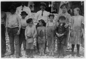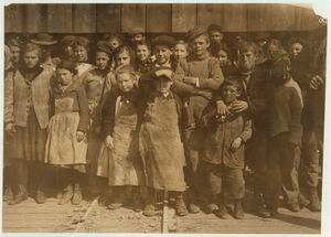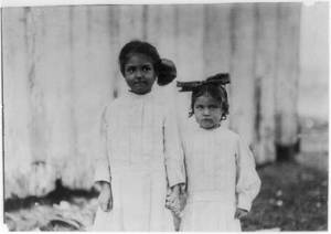 Some of the young shrimp-pickers working at the Dunbar, Lopez, Dukate Co., Youngest five and eight years old. Location: Biloxi, Mississippi.