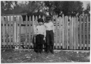 Steve Romeo, and Wince? Pizlow, both are shuckers in the Barataria Canning Company. I saw the smallest one going to work at 5 A.M. at Gorenflo's Canning Factory, on Mar. 5th. Location: Biloxi, Mississippi.