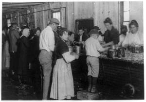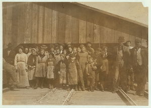 Group of oyster shuckers in Barataria Canning Co. In this group are Gertrude Kohn, five years old, and Pauline ---, eight years old. See also photos 1973, 1976, 1997, 1998. Location: Biloxi, Mississippi.