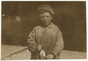 Eight-year-old Max, one of the young shrimp pickers in the Dunbar, Lopez, Dukate Company. Only a small force was working that day. Location: Biloxi, Mississippi.
