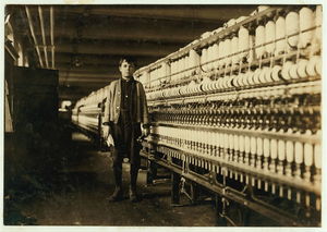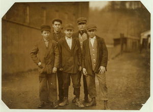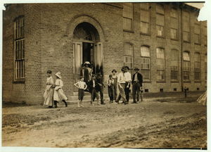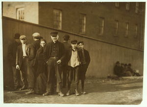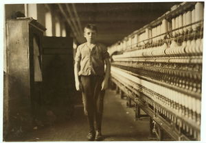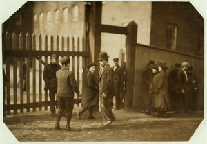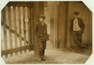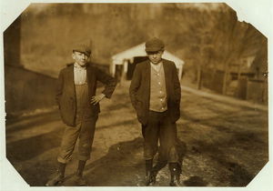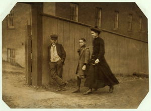 Apparently one of the young helpers going to work at 1 P.M. Location: Chicopee, Massachusetts.