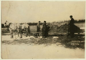 Sanding the cranberry marsh in the winter - one of the aids towards securing the fine "stand" of vines shown in 3765. Owner - Mr. Andrew Searles. Photo through the courtesy of Mr. Searles. Location: Grand Rapids, Wisconsin.