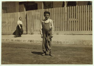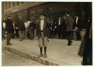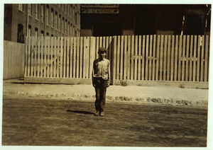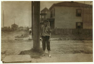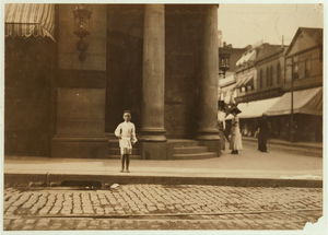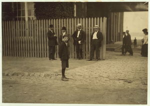 John Sims. See #2304. Caption 2304: John Sims, 7 year old newsie, New Bedford, Mass. August 22, 1911. Evening. Richard K. Conant, Witness. Location: New Bedford, Massachusetts.