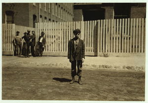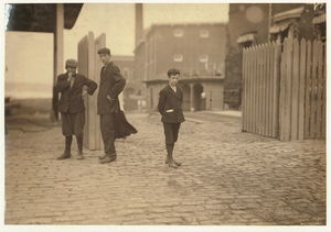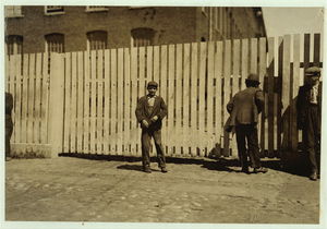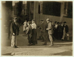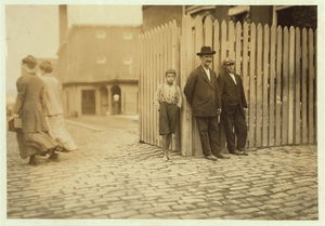 These subjects went to work at 6:45 A.M. and many of them came out at 6 P.M. for they "work" in this mill. New Bedford, Mass. August 24, 1911. 6:30 A.M. Richard K. Conant, Witness,. Location: New Bedford, Massachusetts.