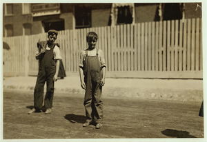Manuel Joson i.e., Jason, on left of picture, 58 First Street, Ward 5. 18 years old. Mann Jacintho in centre of picture, 1 South Front Street, 15 years old. Witness - R.K. Conant. Location: New Bedford, Massachusetts.