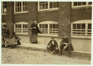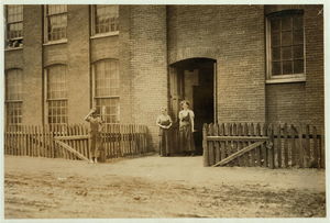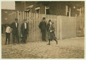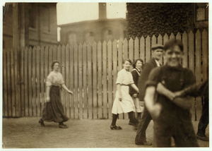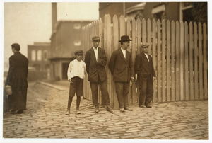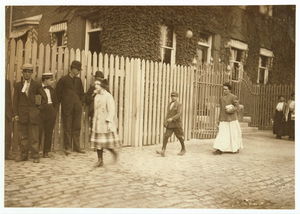 These subjects went to work at 6:45 A.M. and many of them came out at 6 P.M. for they "work" in this mill. New Bedford, Mass. August 24, 1911. 6:30 A.M. Richard K. Conant, Witness,. Location: New Bedford, Massachusetts.