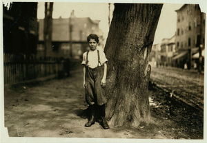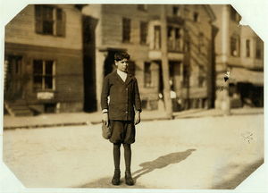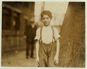 Salvator Guattirto i.e., Quattirto?, 48 Union St., one of the very young boys in the spinning room of the Ayer Mill. Has steady job there now. Used to work in the Wood Mill. Location: Lawrence, Massachusetts.