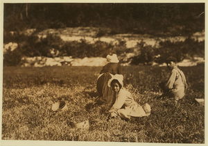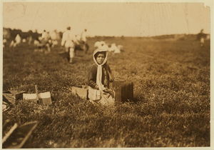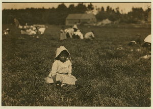 Abbe, said 10 years old who picks 10 pails a day. Also two young Italian illiterates. Location: Rochester vicinity Eldridge Bog, Massachusetts.