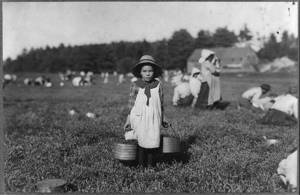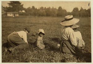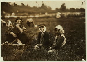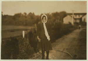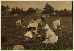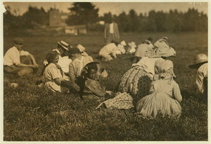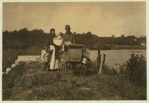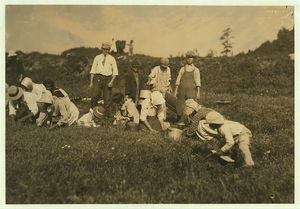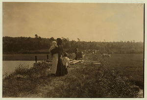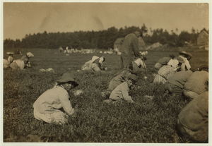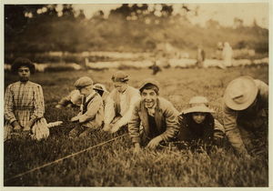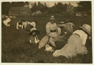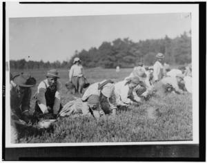 Going to work. The manager said, "We have 150 workers beside the kids." Location: Falmouth vicinity - Swift's Bog, Massachusetts.