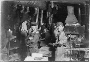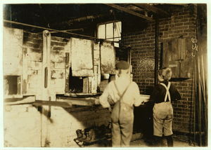 Boys at Lehr glass works. Location: West Virginia.