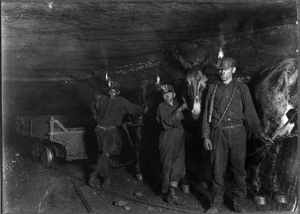 Drivers and Mules, Gary, W. Va., Mine, Where much of the mining and carrying is done by machinery. Location: Gary, West Virginia.