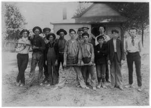 The Ball Team. Composed mainly of glass workers. Indiana. Aug. 1908. L.W.H. Lewis Wickes Hine. Location: Indiana.