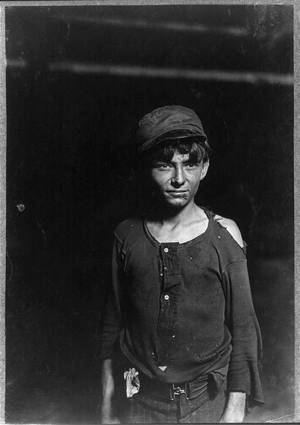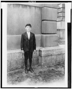 #95. A Glass Works Boy Waiting for the Night Shift, Indiana. Aug., 1908. Location: Indiana.