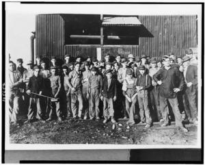 National Child Labor Committee. No. 92. Main entrance Gary W. Va. Mine. Miners going into mine 7 A.M. Boy beginning career as "picker." Will be in mine over 10 hours consecutively. 7 A.M. to 5:30 P.M. Location: Gary, West Virginia.