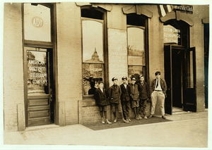 Postal Telegraph Messengers, Indianapolis, (Indiana has no age limit for mes'grs.) Location: Indianapolis, Indiana.