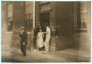 Girls Going Home From Indianapolis Tile Works. Aug., 1908. Location: Indianapolis, Indiana.