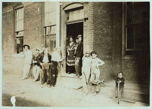 Girls and Boys Going Home from Indianapolis Tile Works. Aug., 1908. Wit., E. N. Clopper. Location: Indianapolis, Indiana.