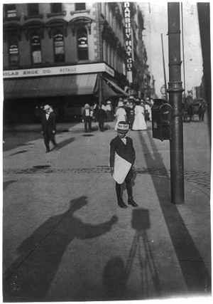 John Howell, an Indianapolis newsboy, makes $.75 some days. Begins at 6 a.m., Sundays. (Lives at 215 W. Michigan St.) Location: Indianapolis, Indiana.
