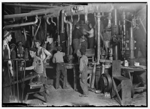 Day Scene in an Indiana Glass Works. Aug., 1908. Location: Indiana.
