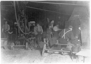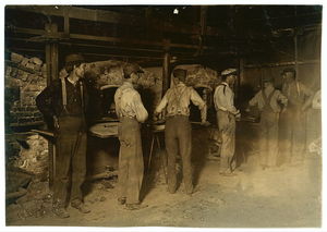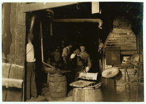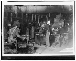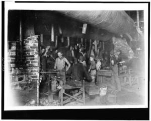 Day Scene in an Indiana Glass Works. Aug.,1908. Location: Indiana.