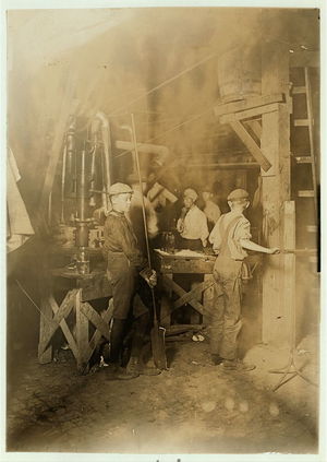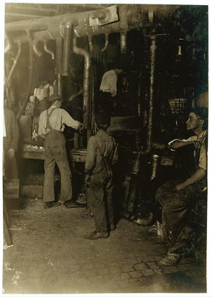 Tygart Valley Glass Co., Grafton, W. Va. Plenty of boys. (see label on 162). Location: Grafton, West Virginia.