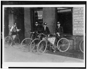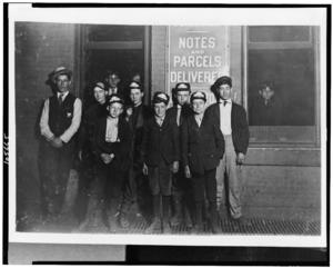 A. D. T. Messengers, Indianapolis. Aug., 1908. Location: Indianapolis, Indiana.