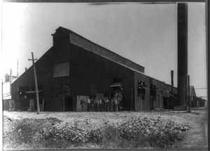 An Indiana Glass Works and some of its workers. Location: Indiana.