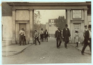 W. B. Corkey Co. Going home 5:30 P.M. Lots of boys here. Girls go out at other entrance. Hammond, Ind. Location: Hammond, Indiana.