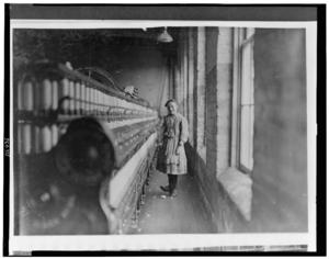 Young spinners in Elk Cotton Mills. Youngest girl hardly knew her name. Youngest boy runs two sides at ten cents each a day. Location: Fayetteville, Tennessee.