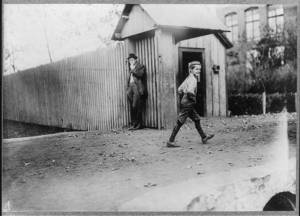 Boy going home to lunch from Singer Mfg. Co., Said he was 15 years old. Question? Been there one year. Location: South Bend, Indiana.