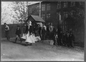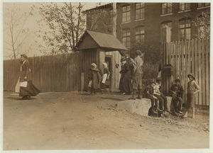 Noon hour, Singer Mfg Co., Boys work there: girls carry lunch. Location: South Bend, Indiana.
