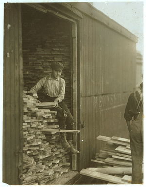 Young boy working for Hickok Lumber Co. Location: Burlington, Vermont.