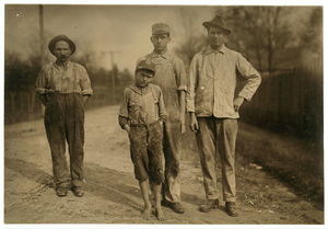 Charlie Foster has a steady job in the Merrimack Mills. School Record says he is now ten years old. His father told me that he could not read, and still he is putting him into the mill. See Hine report. Location: Huntsville, Alabama.