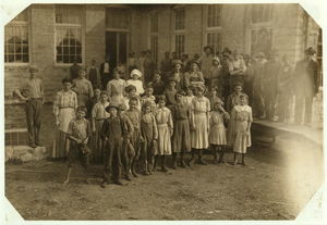 The whole force of workers in the cotton mills of Stevenson, Ala. Several of them are apparently under twelve, but I could not get the ages. Photo posed by the general manager. Location: Stevenson, Alabama.