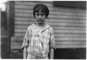 Madeline Causey ten year old worker in Merrimack Mills. Been working there for four months. Fills batteries. Her mother said she was born July 7, 1903. See Hine report. Location: Huntsville, Alabama.