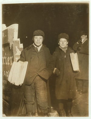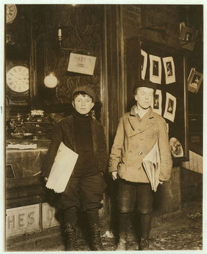 (On right) Donato Dandrea selling at 10 P.M. (See No. 1213.) (Left) John Rieiglian, 15 years old, 21 Evans St.,. Location: Buffalo, New York (State)
