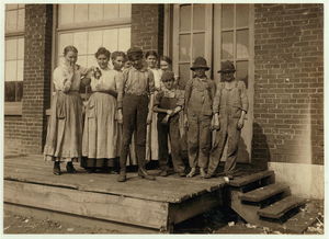 Group of workers in Indian Head Mills. Youngest ones would not be photo'd. (See label 1839.) Location: Cordova, Alabama.