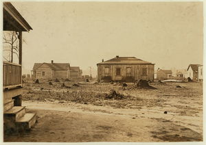 Mill School House (in middle) surrounded by mill houses. Maple Mill, Dillon, S.C. Small need here for large schoolhouse. Most of the children in mill. Location: Dillon, South Carolina.
