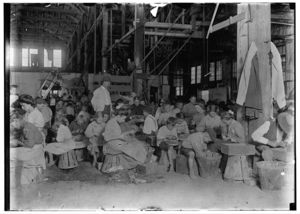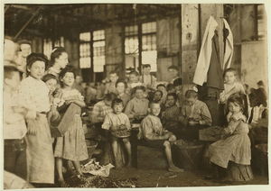 Interior of J. S. Farrand Packing Company, Baltimore, Md. Many tiny workers. Babies are held on laps of workers, or stowed away in empty boxes. Location: Baltimore, Maryland.
