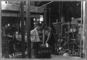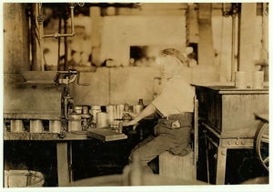 A canning machine and some of the boys Small boys work at and around these machines some of which? are dangerous. J. S. Farrand Packing Co., Baltimore, Md. Witness--J. W. Magruder. July 7, 1909. Location: Baltimore, Maryland.