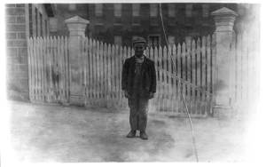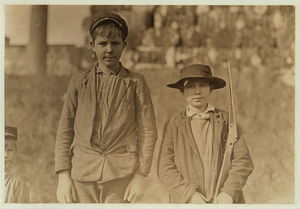 Lancaster (S.C.) Cotton Mills, Wesley Strand (with gun). Has been in mill 1 year. Been sick lately. Rochel Stokes. In mill 1 year. Said he had trouble and quit. Location: Lancaster, South Carolina.