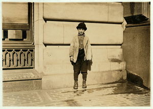 Sunday noon. Some of the newsboys returning Sunday papers. Many of them had been out since 5 and 6 A.M. Hartford, Conn. Location: Hartford, Connecticut.