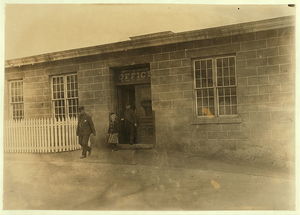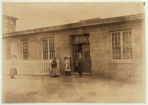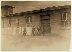 Noon hour, April 17, 1909. Natick, (R. I.) Mills. Location: Natick, Rhode Island.