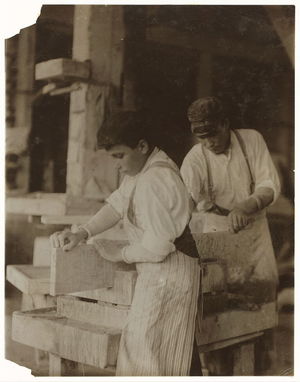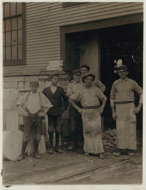 Young boys working in Vermont Marble Co., Proctor, Vt. Very illiterate. Location: Proctor, Vermont.