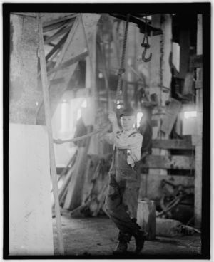 Young boy running machine in Vermont Marble Co., Centre Rutland, Vt. Location: Centre Rutland, Vermont.