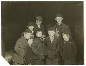 Line of children found in a "penny arcade" at 1:30 P.M. As many of the schools in Schenectady run on "half time" they are not necessarily truants. Location: Schenectady, New York (State)