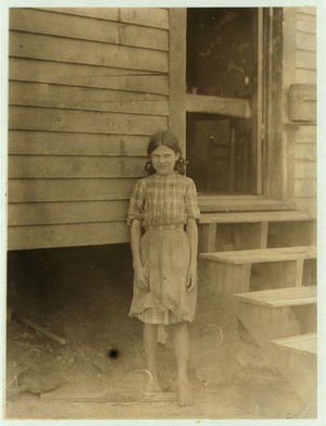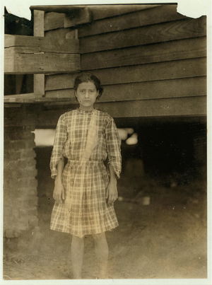 Nerva Wright, 119 William St., runs 4 sides in Saxon Mill, Spartenberg sic, S.C. Been spinning one year. 3 children are in the mill. "My eyes hurt me when I'm out doors. It's so dark in the spinnin room." Location: Spartanburg, South Carolina.