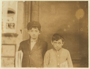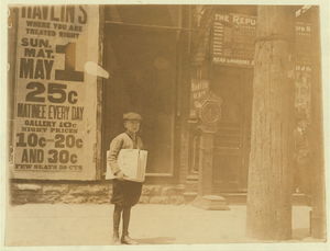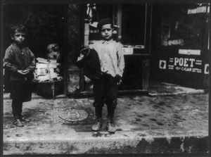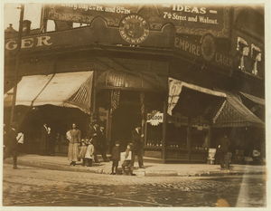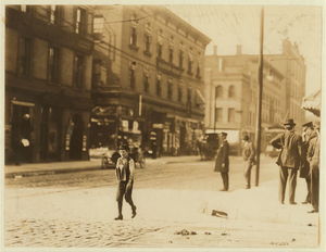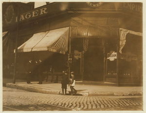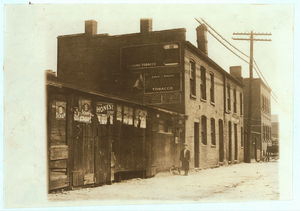 Saloon and boys selling. Location: St. Louis, Missouri / Photo by Lewis W. Hine.