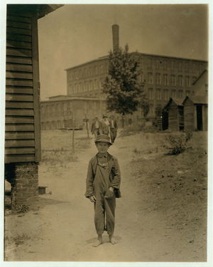 Eddie Norton sweeping in Saxon Mill, (See Label 2976). Location: Spartanburg, South Carolina